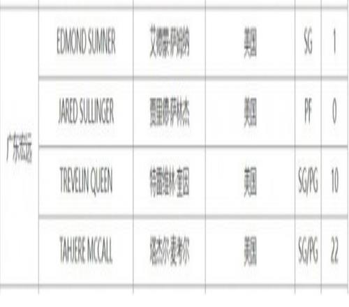 广东男篮正式注册萨姆纳:组四外援阵容上季得分王今日迎首秀